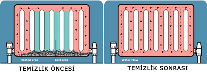 Termal kamera sonuçlarına göre petek, tesisat ve kombi temizleme işlemi değişiklik gösterebilir. Amaç kombi kazanında ısıtılan suyun tesisat yardımı ile ısı kaybına uğramadan peteklere ulaşmasıdır. Öncelikle kombi incelenir ve temizleme işlemi uygulanır. Makine yardımı ile ilaçlı su, kombinize pompalanır. Giriş vanasından kimyasal gönderilir, çıkış vanasından geriye alınarak incelenir. Tesisat hattınız ve petekleriniz içinde aynı işlem uygulanır. Kalorifer tesisatınızda tıkanıklık var ise termal kamera ile gözlenir. Isısı kayıt edilir.