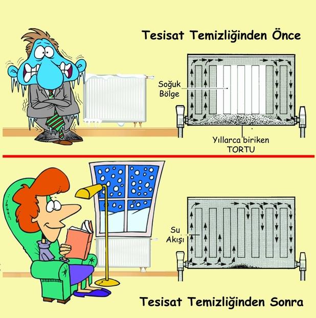 Tesisat temizliği yapmaktaki amaç, yakıt giderlerini minimize etmek ve daha sağlıklı ısınma elde etmektir. Tesisatın içerisindeki kireç ve tortuyu kimyasal temizleme maddeleri kullanarak dışarıya çıkarmaktır. İşlemin gerçekleştirilebilmesi için dikkat edilmesi gereken bir çok hassas nokta vardır. Kullanılacak olan kimyasal ilaç, temizleme esnasında kullanılan teknoloji gibi durumlar önem taşımaktadır. Yanlış yapılacak bir uygulama sonucunda istenmeyen problemler ortaya çıkabilir.